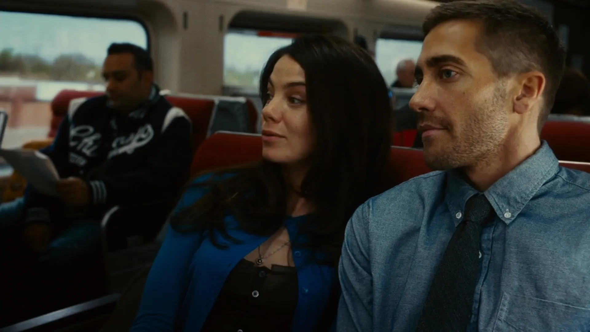 Cast: Jake Gyllenhaal as Colter Stevens, Michelle Monaghan as Christina Warren, Vera Farmiga as Colleen Goodwin, Jeffrey Wright as Dr. Rutledge, Michael Arden as Derek Frost, Cas Anvar as Hazmi, Russell Peters as Max Denoff, Brent Skagford as George Troxel, Craig Thomas as Gold Watch Executive, Gordon Masten as Conductor, Susan Bain as Nurse, Paula Jean Hixson as Coffee Mug Lady, Lincoln Ward as Minister Sudoku, Kyle Gatehouse as College Student, Albert Kwan as Soda Can Guy, Anne Day-Jones as Office Manager, Clarice Byrne as Secretary, James A. Woods as Aviator Glasses Guy, Joe Cobden as Lab Technician, Tom Tammi as CNN Anchor, Matt Holland as Lock Tech, Jasson Finney as M.P., Kyle Allatt as Aide, Frédérick de Grandpré as Sean Fentress Reflection, Pierre Leblanc as Train Official, Raynald Lapierre as UPG Medic, Scott Bakula as Colter's Father (voice)